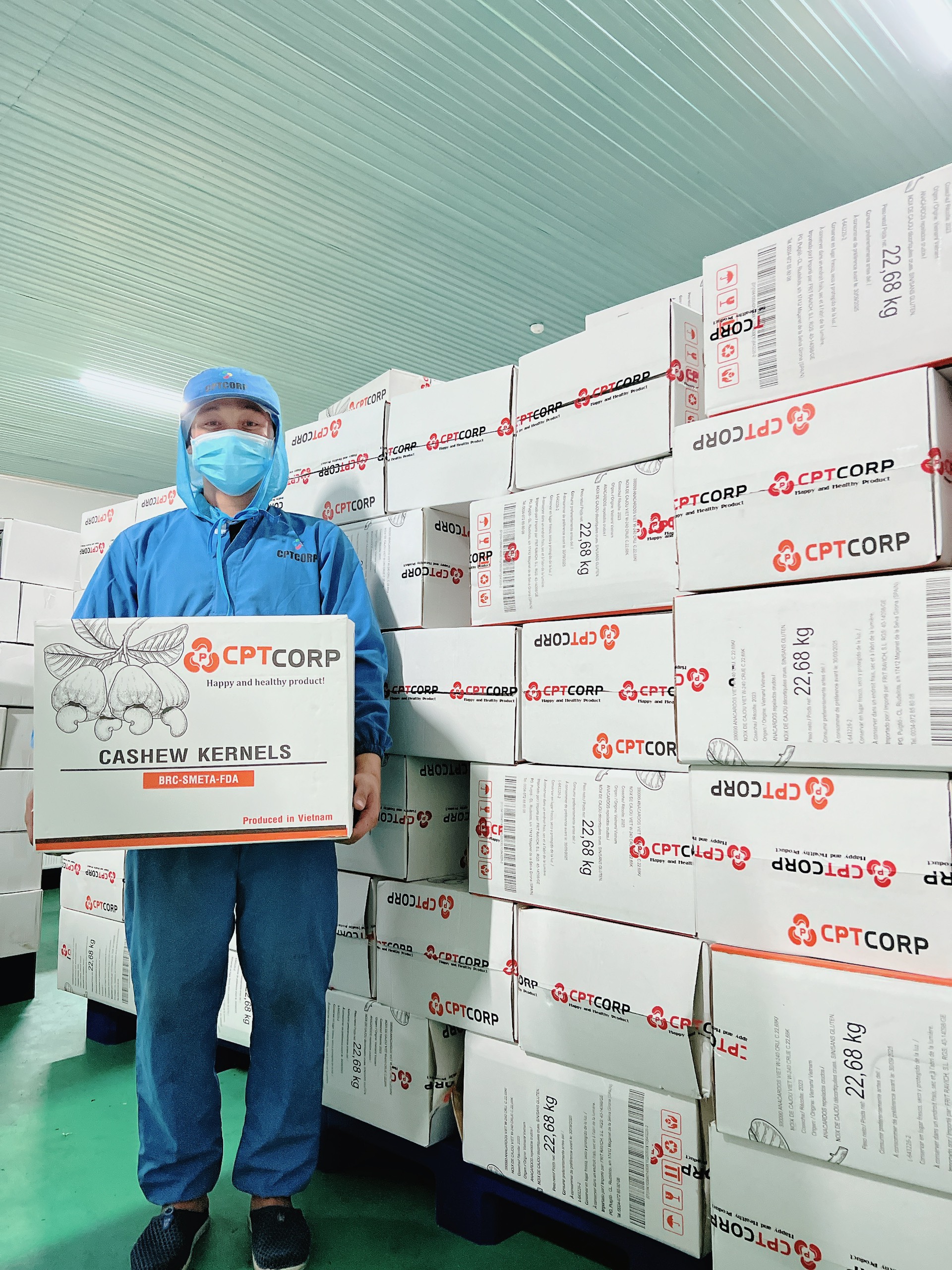 Grading + Steaming + Cooling -> Cutting -> Drying -> Humidifying -> Taking out the skin by machine > Color sorting cashew kernels -> Fumigation -> Packing process -> Storing and exporting