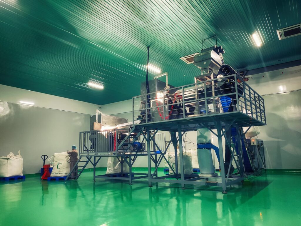 - Then raw cashew nuts are transported to keep in the warehouse by clean truck to start production process as below: